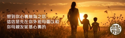 想到你心裏無偽之信,這信是先在你外祖母羅以和你母親友妮基心裏的,我深信也在你的心裏。(提摩太後書一5)