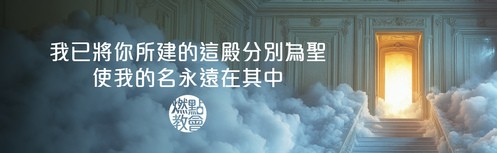 分別為聖,可說是上帝給我們一份很大的禮物。本來我們就是罪人,與上帝無份,但上帝卻藉著獨生子耶穌的拯救,讓我們能夠得稱為祂的子民、兒女,能夠擁有分別為聖的生命。然而,上帝又知道我們軟弱,於是容許人為祂造聖殿,作為提醒人之用。