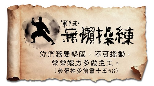 所以,我親愛的弟兄們,你們務要堅固,不可搖動,常常竭力多做主工;因為知道,你們的勞苦在主裏面不是徒然的。(哥林多前書十五58)