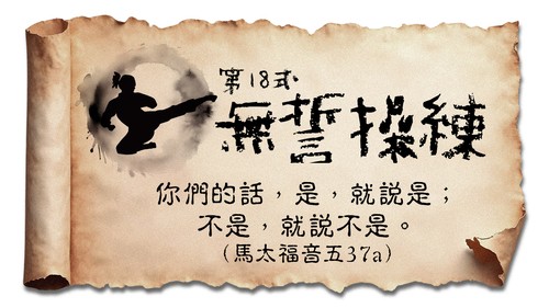 33「你們又聽見有吩咐古人的話,說:『不可背誓,所起的誓總要向主謹守。』34 只是我告訴你們,甚麼誓都不可起。不可指著天起誓,因為天是神的座位;35 不可指著地起誓,因為地是祂的腳凳;也不可指著耶路撒冷起誓,因為耶路撒冷是大君的京城;36 又不可指著你的頭起誓,因為你不能使一根頭髮變黑變白了。37 你們的話,是,就說是;不是,就說不是;若再多說就是出於那惡者 。」(馬太福音五33-37)