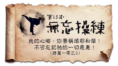 3. 常念記主恩:詩人一開始便提醒我們:「我的心哪,你要稱頌耶和華!」(參詩篇一零三1-2) 這是詩人對自己的提醒,也是一種「無忘操練」。我們若不刻意去回想、去感恩,很容易就會被世界的憂慮與繁忙沖淡對神的記憶。