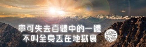 27「你們聽見有話說:『不可姦淫。』 28 只是我告訴你們,凡看見婦女就動淫念的,這人心裏已經與她犯姦淫了。29 若是你的右眼叫你跌倒,就剜出來丟掉,寧可失去百體中的一體,不叫全身丟在地獄裏。30 若是右手叫你跌倒,就砍下來丟掉,寧可失去百體中的一體,不叫全身下入地獄。」 (馬太福音五27-30)