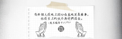 19 我又告訴你們,若是你們中間有兩個人在地上同心合意地求甚麼事,我在天上的父必為他們成全。20 因為無論在哪裏,有兩三個人奉我的名聚會,那裏就有我在他們中間。」。(馬太福音十八19-20)